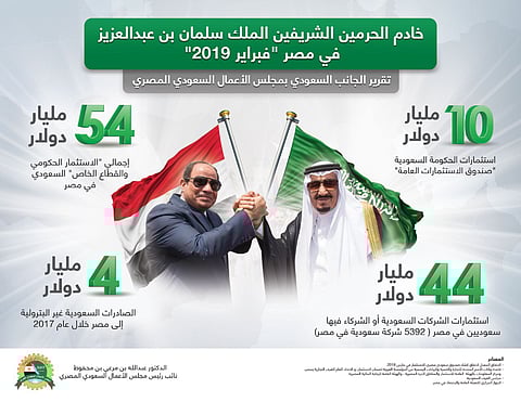 وتابع: "كما بلغ قيمة إجمالي الصادرات السعودية غير البترولية إلى مصر خلال عام 2017 أربعة مليارات دولار، إضافة إلى حزمة مشاريع سعودية جديدة في مصر أعلن عنها مع بداية 2019 منها على سبيل المثال: