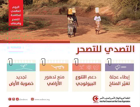 شاركت الأمانة العامة للمنظمة العربية للهلال الأحمر والصليب الأحمر "آركو"، دول العالم؛ الاحتفال باليوم العالمي لمكافحة التصحر والجفاف، اليوم 17 يونيو 2023، تحت شعار "المرأة أرضها وحقوقها".