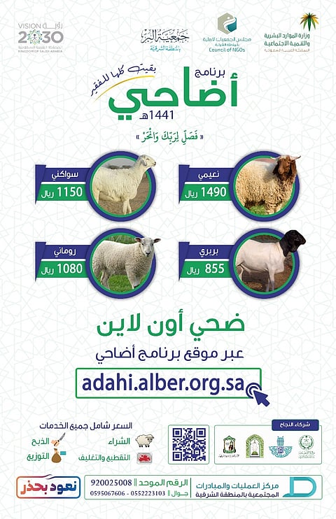 ودعا "العفيصان" أهالي المنطقة الشرقية الراغبين في أداء شعيرة الأضحية زيارة الرابط https://adahi.alber.org.sa / لحجزأضحيتهم من خلاله إلكترونياً عن بعد عليهم عليهم وتأمين سلامتهم في ظل جثة كورونا.