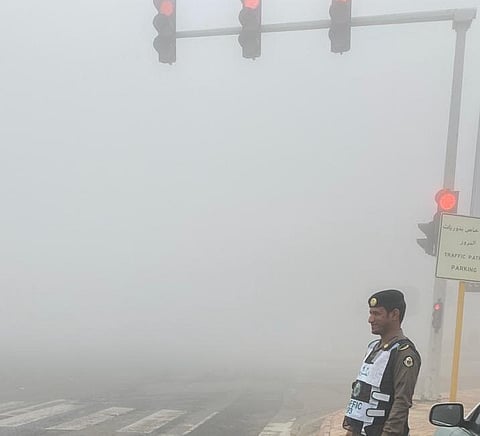 وقالت: يلزم التاكد من جودة مساحات الزجاج الأمامي، واستخدام أنوار الضباب إذا وُجدت، مع عدم استخدام أنوار المركبة العالي، والحرص على عدم تغيير المسار المفاجئ.