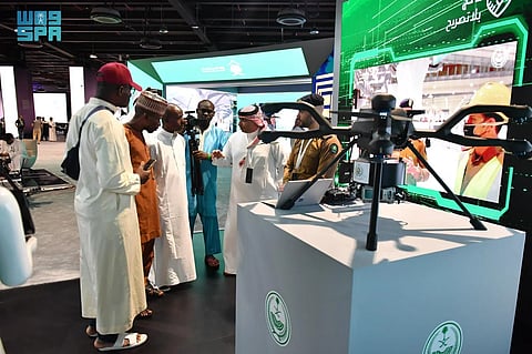 تستعرض وزارة الداخلية ممثلة في المديرية العامة للدفاع المدني لزوار المعرض المصاحب لأعمال ملتقى إعلام الحج، الذي تنظمه وزارة الإعلام خلال الفترة من (4 - 10 من ذي الحجة 1445هـ) الموافق (10-16 يونيو 2024م) بمركز مكة للمعارض والمؤتمرات في مدينة مكة المكرمة، طائرة دون طيار “الدرون”، التي تُستخدم في المواد الخطرة عن طريق جهاز مثبت في قاعدة الطائرة يرتبط مباشرة بجهاز لوحي؛ بهدف تحليل وتفسير البيانات بعد القياس.