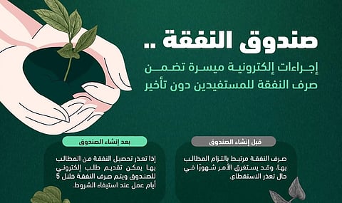وقبل إنشاء الصندوق كان صرف النفقة مرتبطًا بالتزام المطالب بها، وقد يستغرق الأمر شهورًا في حال تعذر الاستقطاع، وبعد إنشائه إذا تعذر تحصيل النفقة من المطالب بها؛ يمكن تقديم طلب إلكتروني للصندوق، ويتم صرف النفقة خلال 5 أيام عمل، وذلك عند استيفاء الشروط.