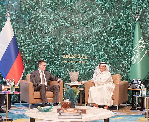 التقى، في الرياض اليوم, الأمير عبدالعزيز بن سلمان بن عبدالعزيز؛ وزير الطاقة، رئيس الجانب السعودي في اللجنة الحكومية المشتركة للتعاون التجاري والاقتصادي والعلمي والتقني بين المملكة العربية السعودية وروسيا الاتحادية, نائب رئيس الوزراء الروسي، رئيس الجانب الروسي في اللجنة المشتركة ألكسندر نوفاك، الذي يقوم بزيارة للمملكة.