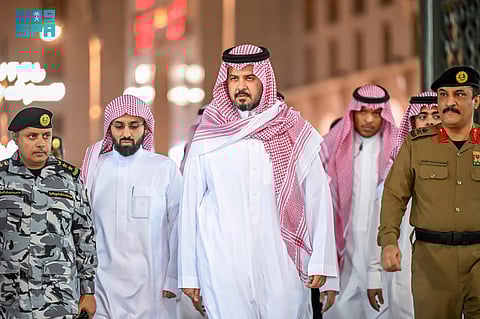 كما زار سموه غرفة العمليات الأمنية في المسجد النبوي الشريف وقدّم قائد القوة الخاصة لأمن المسجد النبوي العقيد متعب البدراني، مَلمحًا عن دور الغرفة الأمنية التي تشرف عليها الكوادر المتخصصة لمتابعة حركة المصلين ومراحل التفويج في الساحات وداخل المسجد النبوي.