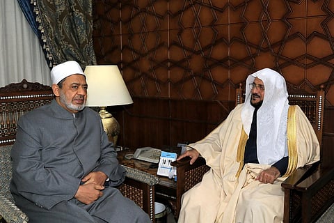 استقبل الإمام الأكبر شيخ الأزهر الدكتور أحمد الطيب، بمقر المشيخة في القاهرة اليوم، وزير الشؤون الإسلامية والدعوة والإرشاد الشيخ الدكتور عبداللطيف بن عبدالعزيز آل الشيخ، والوفد المرافق له الذي يزور جمهورية مصر العربية حالياً؛ للمشاركة في مؤتمر بناء الشخصية الوطنية الذي نظمته وزارة الأوقاف خلال اليومين الماضيين.