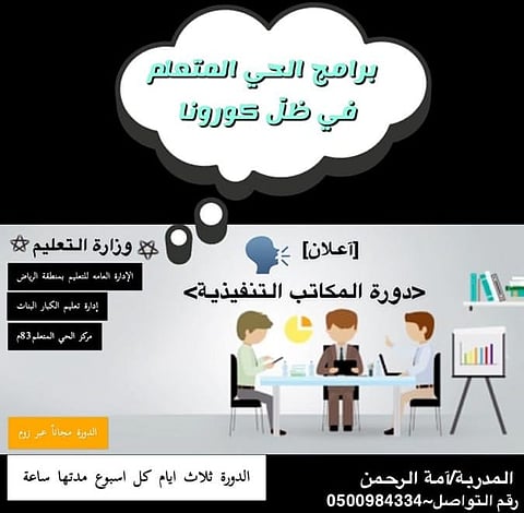 تنفذ مراكز الأحياء التابعة لتعليم الرياض "بنات"، عددًا من الدورات التدريبية المجانية عن بُعد عبر برنامج zoom، ضِمن برنامج إدارة التعليم المستمر للبنات "برامج الحي المتعلم في ظل كورونا".