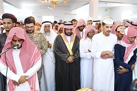 وعقب الصلاة نقل محافظ الدرب، تعازي ومواساة القيادة الرشيدة لوالد وأسرة الشهيد، سائلاً الله عز وجل أن يتغمده بواسع رحمته، ويسكنه فسيح جناته، ويلهم أهله وذويه الصبر والسلوان.