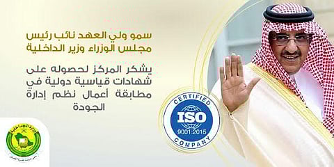 ثمَّن ولي العهد نائب رئيس مجلس الوزراء وزير الداخلية، صاحب السمو الملكي الأمير محمد بن نايف بن عبدالعزيز آل سعود، الجهود التي بذلها مركز المعلومات الوطني، التي أثمرت بحصول إدارات المركز وفروعه على شهادات قياسية دولية في مطابقة أعمال نظم إدارة الجودة.