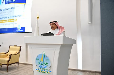 جاء ذلك خلال رعاية "القحطاني" صباح اليوم بمسرح كلية علوم الحاسب وتقنية المعلومات بالمدينة الجامعية لورشة العمل الأولى لوحدة التوعية الفكرية بالجامعة تحت عنوان "دور الأندية الطلابية في تفعيل مفاهيم التوعية الفكرية"، ودشن خلالها "منصة ملاحظة فكرية"؛ لتسهل على منسوبي الجامعة وطلبتها أداء واجبهم الوطني في التبليغ عن الممارسات المتطرفة وسرعة التواصل مع منسوبي وحدة التوعية الفكرية.
