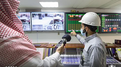 وبيّن العمري أنه يوجد أكثر من (65 ) كادراً تشغيلياً متخصصاً من مهندسين وفنيين ومشرفين ومشغلين لهذه الأنظمة، للتأكد من التنفيذ وفق أصول فنية متّبعة والتأكد من خلوها من أي عيوب باستخدام أحدث التقنيات، كما يجري تشغيل الأنظمة الصوتية من غرفة التحكم الرئيسة بالتوسعة السعودية الثانية أو الفرعية بالمكبرية الجديدة بمنطقة المسعى، ويتواصل الفريق مع بعضه عن طريق "الإنتركوم" لضمان عدم انقطاع الصوت قبل الاستعداد لأداء أي شعيرة، وقبل انطلاق الأذان بوقت كافٍ للتأكد من سلامة النظام.