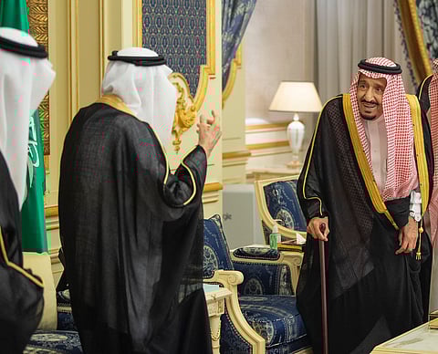 استقبل خادم الحرمين الشريفين الملك سلمان بن عبدالعزيز آل سعود - حفظه الله -، بحضور صاحب السمو الملكي الأمير محمد بن سلمان بن عبدالعزيز ولي العهد نائب رئيس مجلس الوزراء وزير الدفاع، اليوم، أصحاب السمو الأمراء، وأصحاب الفضيلة العلماء والمعالي، وجمعاً من المواطنين الذين قدموا للسلام عليه - رعاه الله-.