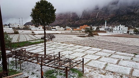وثّق عدد من الهواة مشاهد البرد والثلج التي كست طرق وقرى مدينة تنومة بالنماص بمنطقة عسير.