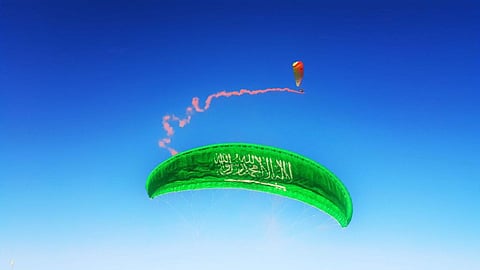 احتفل عدد من الطيارين الشراعيين التابعين نادي الطيران الرياضي باليوم الوطني، بتصميمهم أجنحة خضراء لطائرتهم الشراعية، مع رسم القلوب في سماء السودة بمدينة أبها بمنطقة عسير.