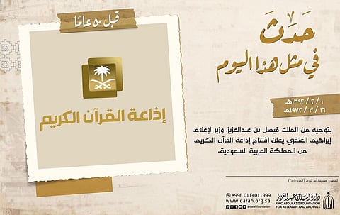 قبل 50 عامًا من الآن، وتحديدًا في مثل هذا اليوم 16 مارس 1972م، تأسست إذاعة القرآن الكريم السعودية؛ لتكون صوتًا دعويًّا، لا يزال يصدح بالحق والذكر آناء الليل وأطراف النهار.