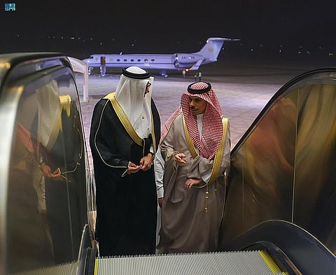 استقبل الأمير فيصل بن فرحان بن عبد الله وزير الخارجية، بمطار الملك خالد الدولي في الرياض، اليوم، وزير خارجية مملكة البحرين الدكتور عبداللطيف بن راشد الزياني.
