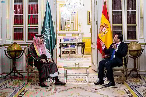 التقى الأمير فيصل بن فرحان بن عبدالله وزير الخارجية، اليوم، وزير خارجية مملكة إسبانيا خوسيه مانويل ألباريس، وذلك في قصر فيانا بالعاصمة الإسبانية مدريد.