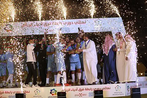 توَّج رئيس رابطة أحياء السعودية عادل الفقي، ونائب رئيس الرابطة الحكم السابق مرعي العواجي، ورئيس رابطة أحياء الرياض محمد عادي، فريق مرسيليا بطلاً لدوري أحياء فِرق الرياض بعد تغلبه على فريق المملكة بهدفَين دون رد، وذلك في المباراة التي جمعتهما على ملعب عرقة.