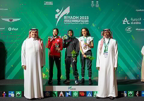 توّج الأمير فهد بن جلوي بن مساعد، نائب رئيس اللجنة الأولمبية والبارالمبية السعودية، لاعبة المنتخب السعودي للملاكمة، كلثوم حنتول، بأول ميدالية ذهبية للسعودية في دورة الألعاب العالمية القتالية الرياض 2023، بعد فوزها على الإماراتية هيا العلي في منافسات وزن 50 كجم.