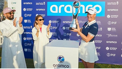 تُوجت سفيرة جولف السعودية اللاعبة البريطانية تشارلي هال، بلقب سلسلة بطولة أرامكو للفِرَق المقدمة من صندوق الاستثمارات العامة، بعد أداء مميز في نادي الرياض للجولف.