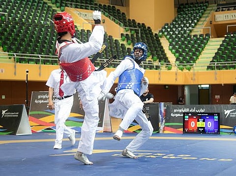 وتم تكريم الحكمين الدوليين مفضي العنزي ونايف الغامدي، لقاء مسيرتهما الطويلة في تحكيم التايكوندو داخلياً ودولياً .