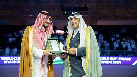 وقدم الأمير عبد الله بن فهد بن عبد الله رئيس مجلس الإدارة، دروعًا تذكارية للشخصيات المكرمة تقديرًا لجهودهم، لما قدموه لرياضة الفروسية، وذلك في حفل ختام بطولة كأس العالم لقفز الحواجز والترويض 2024 والذي أُقيم أمس السبت على أرض مركز معرض الرياض للمؤتمرات والمعارض.
