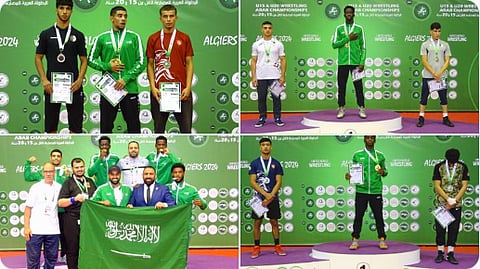 حقق المنتخب السعودي للمصارعة فئة تحت 20 سنة 4 ميداليات عربية "3 ذهبيات وفضية"، خلال منافسات البطولة العربية للمصارعة الرومانية والحرة، التي أقيمت خلال الفترة من 2 - 5 يوليو الجاري في الجزائر.