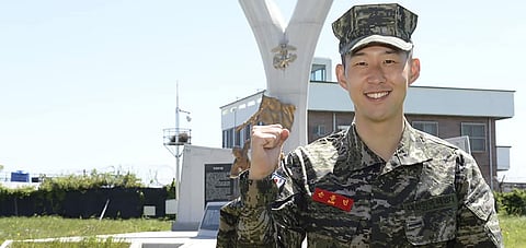 ونشرت القوات البحرية في كوريا الجنوبية صورة لسون وهو يحمل بندقية ويقوم بأداء التحية العسكرية، بعدما أنهى الخدمة بشكل رسمي.