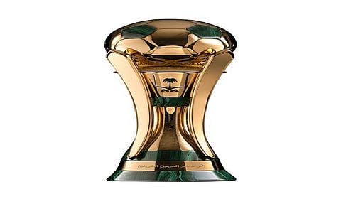 ويعتلي الكأس كرة قدم مطلية بالذهب الخالص ومادة الملكيت، وتنحدر منها 4 مقابض مميزة، وفي المنتصف يوجد شعار السيفين والنخلة التي ترمز إلى المملكة العربية السعودية، بالإضافة إلى نقش اسم الكأس يدويًا بشكلٍ دائري.