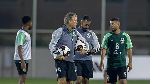 واصل المنتخب السعودي الأول لكرة القدم، اليوم الأحد ، برنامجه التدريبي في معسكره الإعدادي المقام حاليًا في محافظة "الأحساء"، ويستعد الأخضر لمواجهة منتخب الأردن بعد يوم غدٍ الثلاثاء على "ملعب عمّان الدولي" ضمن منافسات الجولة الثانية من الدور الثاني من التصفيات الآسيوية لكأس العالم 2026 وكأس آسيا 2027 . وقسم المدير الفني "روبرتو مانشيني" الحصة التدريبية لفترتين صباحية ومسائية، وأُجريت الحصة التدريبية الصباحية على ملعب نادي الفتح، بدأت بتمارين الإحماء بعدها طبق مانشيني تمارين تكتيكية متنوعة. فيما أُجريت الحصة التدريبية المسائية على الملعب الرديف بنادي الفتح، بدأت بتمرين الإحماء ثم تمرين المربعات قبل أن يجري مانشيني تقسيمة على كامل الملعب، واختتمت الحصة التدريبية بتمارين الإطالة.