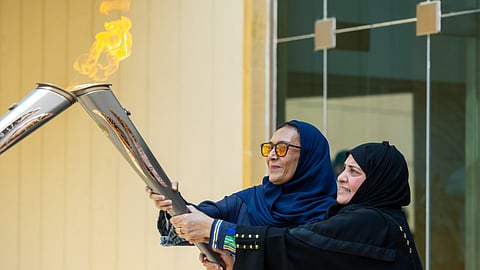 وتناوب على حمل الشعلة خلال زيارتها للجامعة، أصغر غواصة حرة في المملكة العربية السعودية، وصاحبة الرقم القياسي العربي في الغوص الحر، مريم شعلان، والتي سلمت الشعلة بدورها إلى هاني العسيلان، لاعب المنتخب السعودي للناشئين في البلياردو.