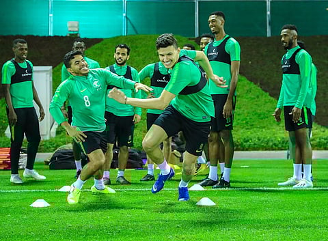 واكتفى لاعبا خط الوسط سلمان الفرج وسالم الدوسري ببرنامج علاجي في عيادة المنتخب.