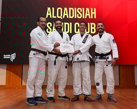 احتفى نادي القادسية بتأهيل وترقية 20 لاعباً لأحزمة الجوجيتسو، بحضور المدير التنفيذي للرياضات المتعددة بنادي القادسية ترافورد ويلسون، ومدير الرياضات القتالية والجماعية بنادي القادسية عادل فلاته، ومدرب منتخبنا السعودي للجوجيتسو البرازيلي يوري الفيس.