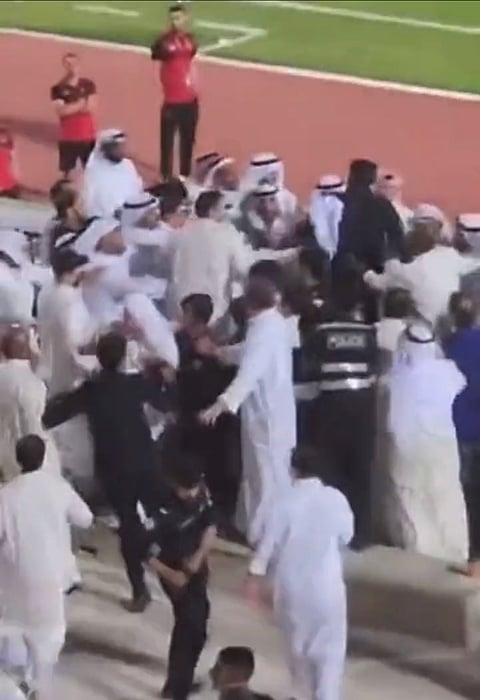 وجاءت المشاجرة بين إداريي الناديين ومسؤوليهم، عقب طرد "عادل عقلة" نائب رئيس جهاز الكرة بنادي الكويت.