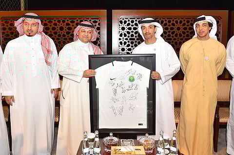 وقدم رئيس الاتحاد السعودي لكرة القدم في ختام الزيارة درع الاتحاد السعودي وقميص المنتخب الوطني المتأهل إلى نهائيات كأس العالم في روسيا، ممهوراً بتوقيع اللاعبين إلى سمو الشيخ هزاع بن زايد وسمو، الشيخ منصور بن زايد؛ تقديراً لسموهما على حفاوة الاستقبال وكرم الضيافة.