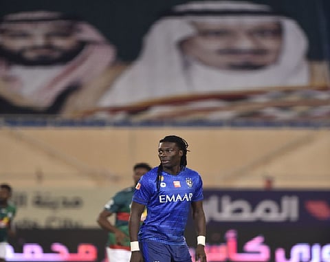 وكانت كاميرات الناقل الرسمي لمنافسات دوري المحترفين السعودي التقطت النجم الفرنسي وهو يردد النشيد الوطني السعودي قبل انطلاق المباراة.