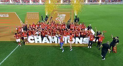 توج الأهلي المصري بكأس السوبر المصرية لكرة القدم للمرة 15 في تاريخه والرابعة توالياً أمس الخميس، على حساب نظيره الزمالك بركلات الترجيح 7-6 ، بعد انتهاء الوقتين الأصلي والإضافي بالتعادل السلبي.