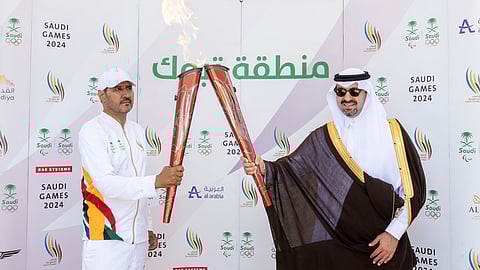 نيابة عن الأمير فهد بن سلطان بن عبدالعزيز أمير منطقة تبوك، تسلم الأمير خالد بن سعود بن عبدالله الفيصل بن عبدالعزيز، نائب أمير منطقة تبوك، في مقر الإمارة اليوم، شعلة دورة الألعاب السعودية الثالثة 2024، في إطار الجولة الترويجية للشعلة لانطلاق أكبر حدث رياضي وطني.