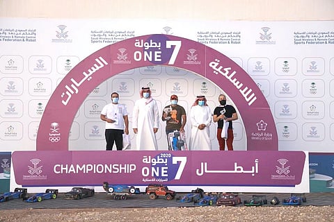 توَّج سعود الفغم، رئيس الاتحاد السعودي للرياضات اللاسلكية والتحكم عن بُعد والروبوت "تحكم"، أصحاب المراكز الثلاثة الأولى في بطولة 7/1 للسيارات اللاسلكية التي نظمها الاتحاد الجمعة 21 أغسطس في مقر الرياضات اللاسلكية بالرياض.