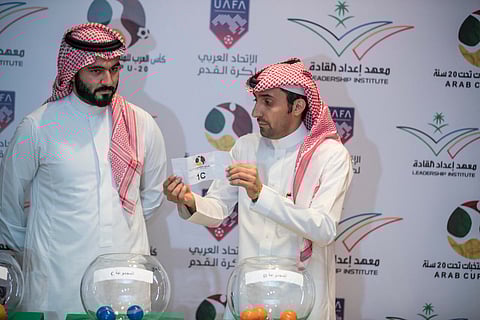 أجريت، اليوم، في مدينة الرياض، مراسم قرعة بطولة كأس العرب للمنتخبات تحت 20 عاماً التي ينظمها الاتحاد العربي لكرة القدم بالشراكة مع معهد إعداد القادة بالهيئة العامة للرياضة، التي ستقام منافساتها بمشاركة 16 منتخباً هي (السعودية – المغرب – الإمارات – البحرين – الكويت – قطر – تونس – السودان – مصر – فلسطين – الجزائر – موريتانيا – ليبيا – جزر القمر – العراق – جيبوتي)، وذلك خلال الفترة من 26 فبراير القادم حتى الخامس من مارس القادم في مدن الرياض والدمام والخبر.