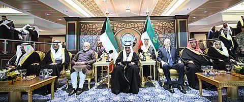 وبدأ الحفل بعزف موسيقى النشيد الوطني الكويتي، تلاه كلمة قصيرة للشيخ مشعل من المقصورة الرئيسية للملعب، حيَّا عبرها ضيوف بلاده الحاضرين قائلاً: «نرحب بكم جميعًا في هذا المحفل الرياضي الذي يجمعنا في دولة الكويت، أرض المحبة والسلام، ويعكس الروح الأخوية الرياضية بين شعوبنا الخليجية».