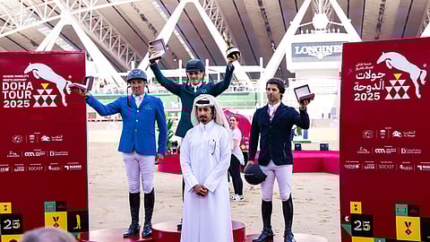 فاز الفارس السعودي عبدالله الشربتلي بالمركز الأول لفئة "أربع نجوم"، ضمن اليوم الثالث (الأخير) من الجولة الأولى من جولات الدوحة لفروسية قفز الحواجز 2025.
