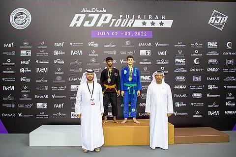وأحرز اللاعب عبدالملك ال مرضي فضية وزن 62 ، فئة الحزام البني بعد خوضه المباراة النهائية مع الإماراتي محمد الشحي في بطولة الفجيرة الدولية لمحترفي الجوجيتسو.