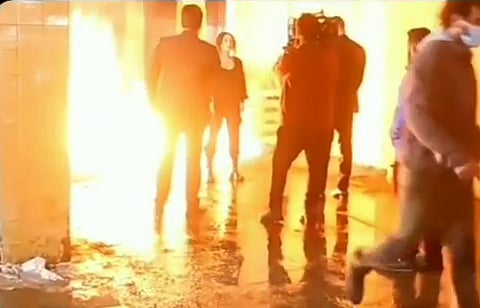 تداول رواد التوصل الاجتماعي مقطع فيديو لمشهد خطير من كواليس تصوير المسلسل اللبناني "للموت2"، بطولة ماغي بو غصن، دانييلا رحمة، محمد الأحمد.