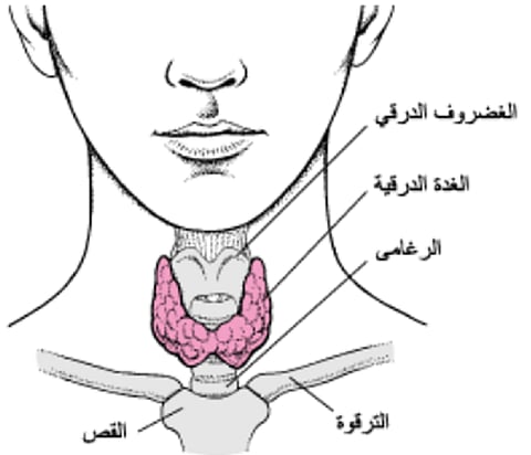 وتقع الغدة الدرقية في الرقبة، أمام القصبة الهوائية، وهي تشبه في شكلها الفراشة التي تفرد جناحيها، وتحتوي على خلايا خاصة تقع في بطانتها تدعى الخلايا الكيسية، وهذه الخلايا هي المسؤولة عن إفراز هرمونات الغدة الدرقية (الثيروكسين وثلاثي يود الثيرونين).