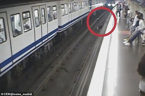 تحركت امرأة على رصيف إحدى محطات المترو في العاصمة الإسبانية مدريد، كانت مشغولة بالنظر في جوالها، وفي لحظة دخول القطار، سقطت فوق القضبان.