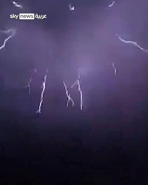 وفي الفيديو الذي نشره موقع "سكاي نيوز عربية" على موقع التواصل الاجتماعي "X "، ظهرت صاعقة البرق كأنها خيوط عنكبوت ضخمة يتكرر ظهورها، لتنتهي بلسان واحد قوي بضوء باهر يضرب الأرض، بينما يضيء كأنه قبة في السماء.