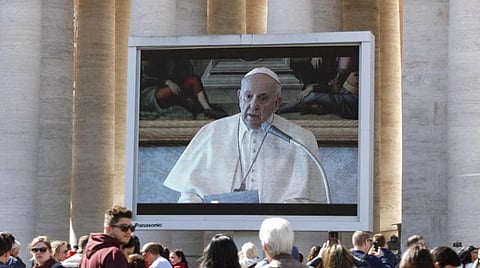 وقال "البابا": "غريبة بعض الشيء هذه الصلاة، اليوم والبابا محبوس في المكتبة؛ لكنني أراكم وقريب منكم"، وفقًا لـ"رويترز".