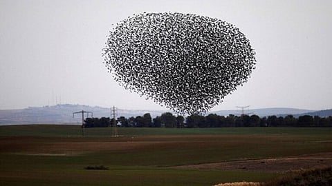 أظهر فيديو متداول على مواقع التواصل الاجتماعي طيور "الزرزور"، وهي تتحرك بشكل جماعي بالغ الدقة، بعد أن وصلت إلى بلدة الفالوجة الفلسطينية قادمة من أوروبا، متوجهة إلى النقب لقضاء عدة شهور هناك حتى يحل الربيع.