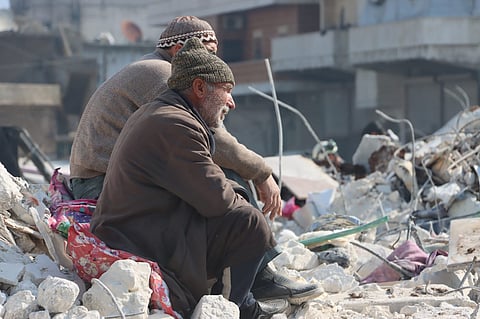 وكتب الدفاع المدني السوري، عبر حسابه الرسمي على "تويتر"، يقول: "على أنقاض المنازل المدمَّرة في بلدة عزمارين غربي إدلب، ينتظر أبو محمد أن ينطق الرُكام عمَّن تحته علّه يعود بذكرى من أخيه الذي قضى مع عائلته تحت الأنقاض التي خلفها الزلزال".