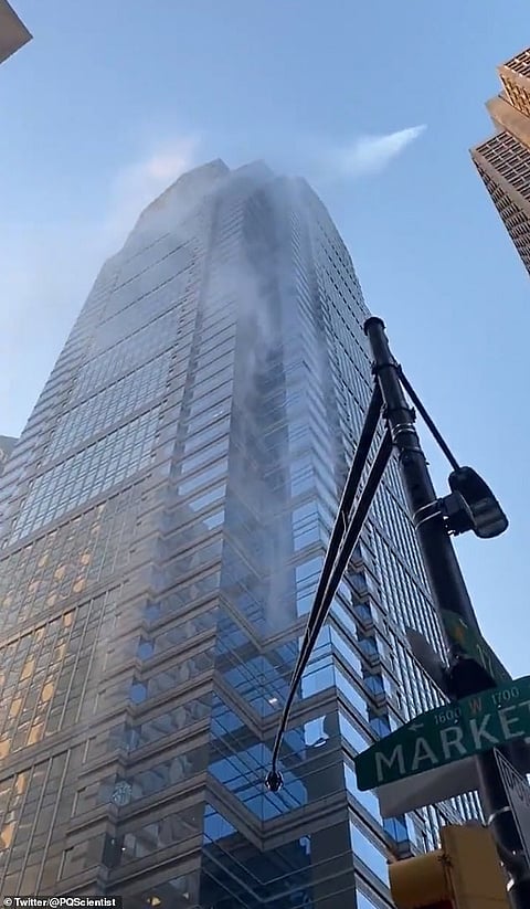 أصيب سكان مدينة فيلادلفيا الأمريكية بالدهشة والحيرة، عقب تداول شريط فيديو غريب يظهر خروج عمود ضخم من الماء من ناطحة سحاب "وان ليبرتي بالاس" الشهيرة، والتي تقع في مركز المدينة.